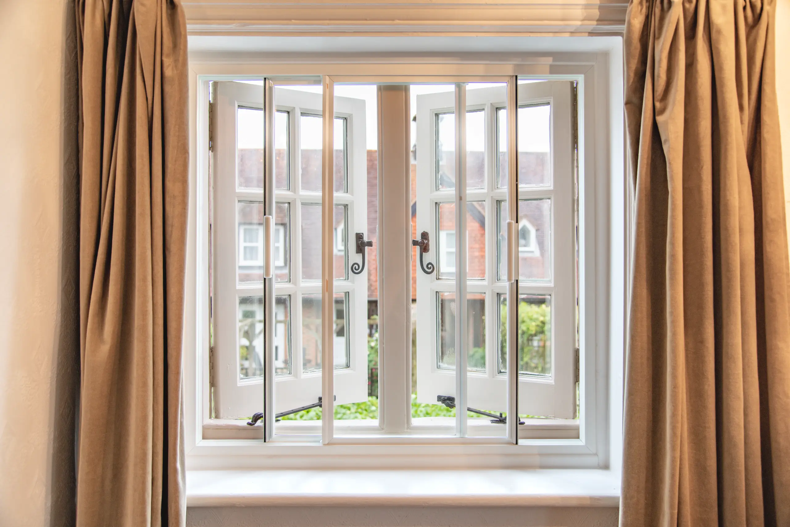Hinged casements are normally used in conjunction with casement windows or traditional box-sash windows. The glazed panes operate on hinges and open into the room.